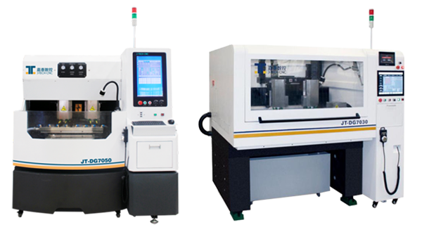 第三個展出的代表性機型——智能玻璃加工機系列JT-DG7030/DG7050,該系列產(chǎn)品主要專用于加工智能手機(蘋果、三星、華為、OPPO等智能手機)、平板電腦、觸摸、液晶、太陽能矽晶片、電子元件等產(chǎn)品的液晶屏玻璃的研磨等加工;主要性能特點是主軸轉(zhuǎn)速可達60000-100000rpm,基礎(chǔ)部件采用“濟南青”大理石,提高整機剛性與穩(wěn)定性;該機床可為藍寶石加工提供整體解決方案;其中,F(xiàn)MS柔性制造系統(tǒng)為高端客戶定制整條機械手自動化生產(chǎn)線。