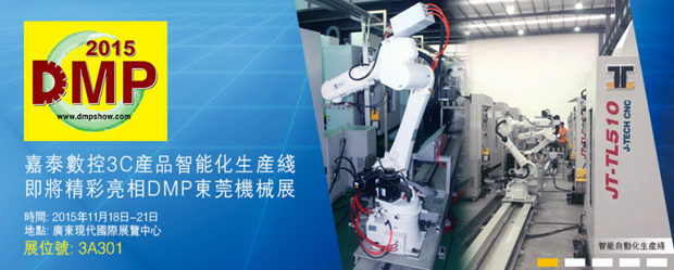 第十七屆東莞國際模具、金屬加工、橡塑膠及包裝展(以下簡稱“DMP東莞機械展”)將于2015年11月18日至21日在廣東現(xiàn)代國際展覽中心舉行。DMP東莞機械展已成為機床行業(yè)下半年度重要的盛會,該展覽會被譽為下半年度華南地區(qū)的一次重大饕餮盛會,輻射以廣東、深圳為主的珠三角地區(qū)以及周邊廣西、湖南等多個省份,獲得國內(nèi)外參展商以及觀眾的一致好評,在廣深區(qū)域已成為一年當中首屈一指的大型展會。 嘉泰數(shù)控致力于為客戶提供智能手機金屬殼、手機及平板電腦液晶玻璃鏡面等精密加工的整體解決方案。針對3C產(chǎn)業(yè)、電子通訊行業(yè)的智能化自動生產(chǎn)線,即將亮相DMP東莞機械展。 嘉泰數(shù)控的智能自動化生產(chǎn)線將在DMP東莞機械展期間,帶給你一個智能手機金屬殼、手機屏幕精密加工的神奇“智造”之旅!智能機器人配合自動上下料,多工件同步試加工,全面詮釋嘉泰數(shù)控機床 的“高效率、高剛性、高精度、高穩(wěn)定性”品質(zhì)魅力。
