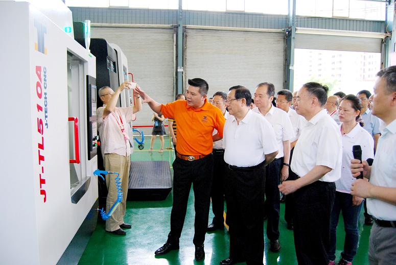 萬鋼部長、周濟院長等領(lǐng)導(dǎo)專家聽取蘇亞帥董事長關(guān)于高速鉆攻機JT-TL510A的成果匯報